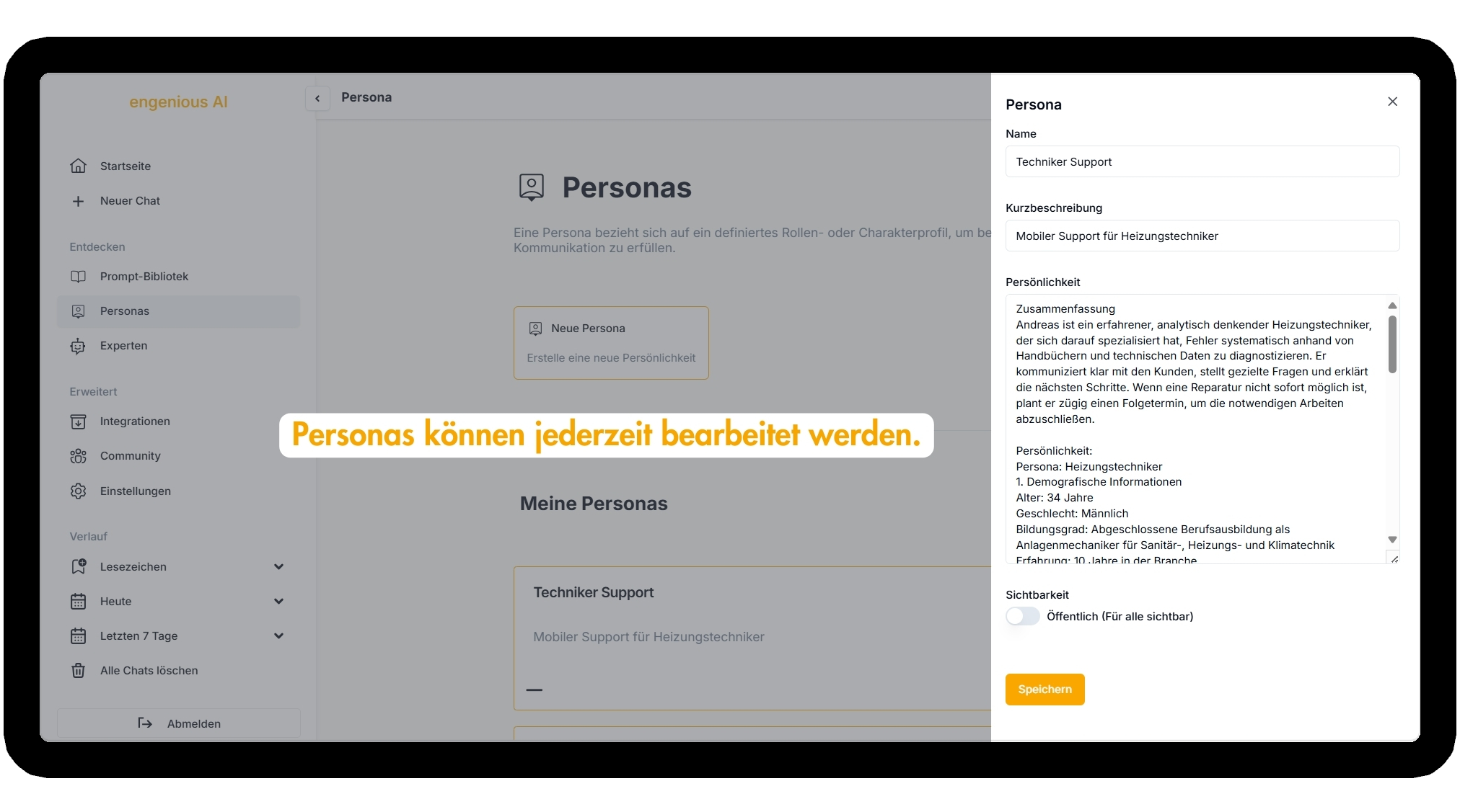 - engenious AI kann in jedem einzelnen Unternehmensbereich eingesetzt werden. Egal ob HR, Controlling, Vertrieb oder Produktion. Du bestimmst, wo engenious AI Dich unterstützen wird.