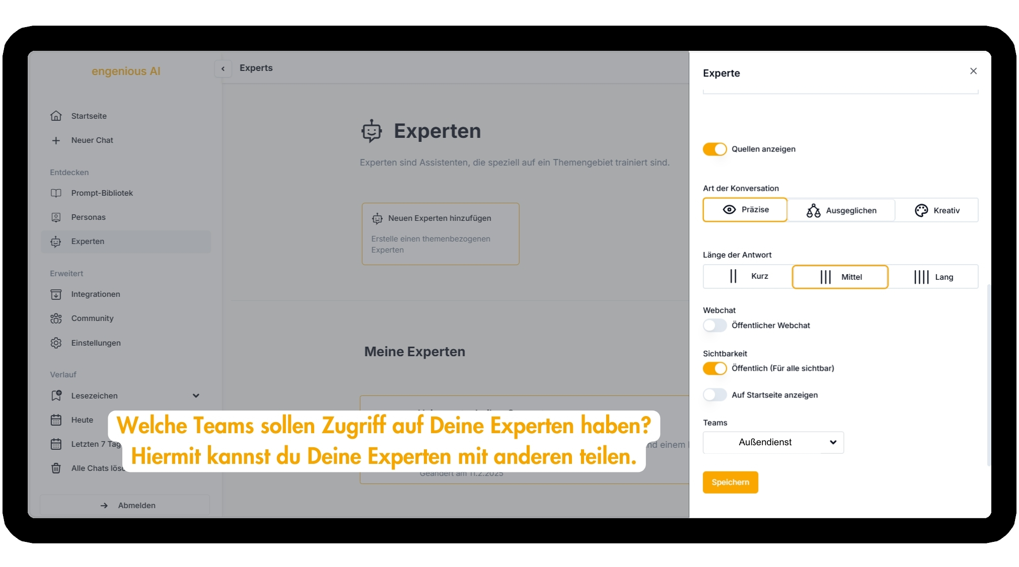 - Erweitere Deine Experten um relevantes Wissen in Form Deiner Dokumente und Daten